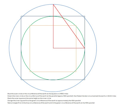 That wasn't so tough. The biggest problem was, what size do I make the outer circle and the inner circle? So, I recalled my many essays on "Robert Gordon's 7 Days" ("The Tunnel Thru the Air"). RG circumvents the earth which was a 33K mile trip. When you parse that trip , you find he traveled about 18K miles east/west and 18k miles north south. Interesting, 18K miles is the circumference of the earth at about the same parallel as New York City. No, Mr. Noxious Poster, the earth is not 24,901 miles in circumference everywhere. In fact, the earth is not a sphere but a spheroid with slightly flat poles. But I diverge.
